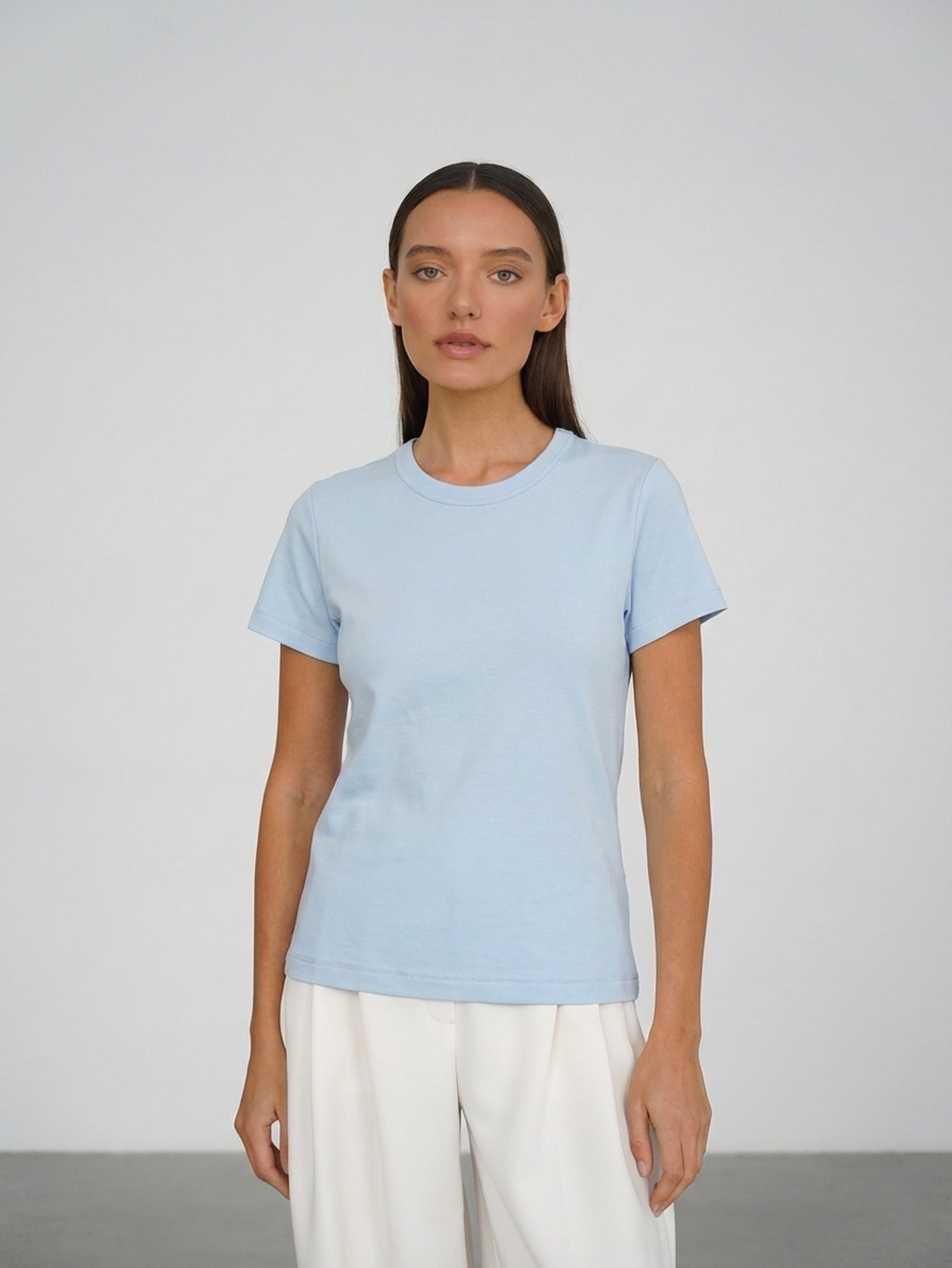 Aukštos kokybės mėlyni medvilniniai marškinėliai