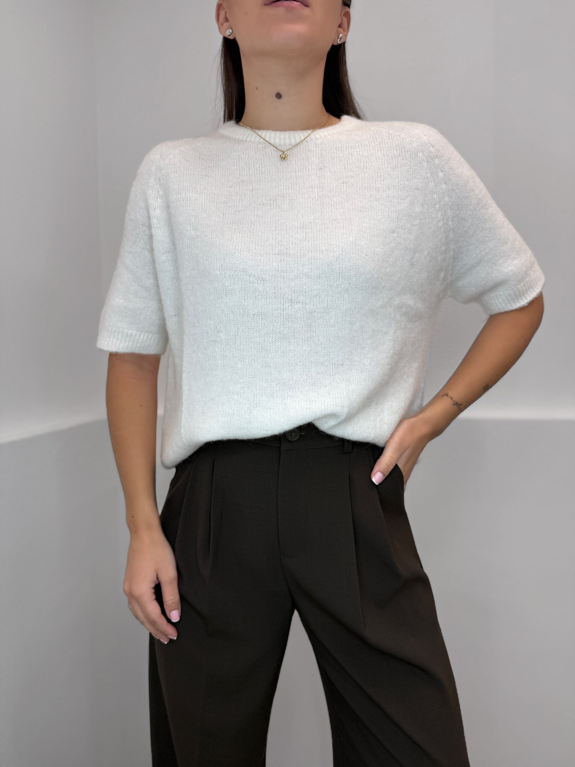 Beige megztinis trumpomis rankovėmis su baby alpaca