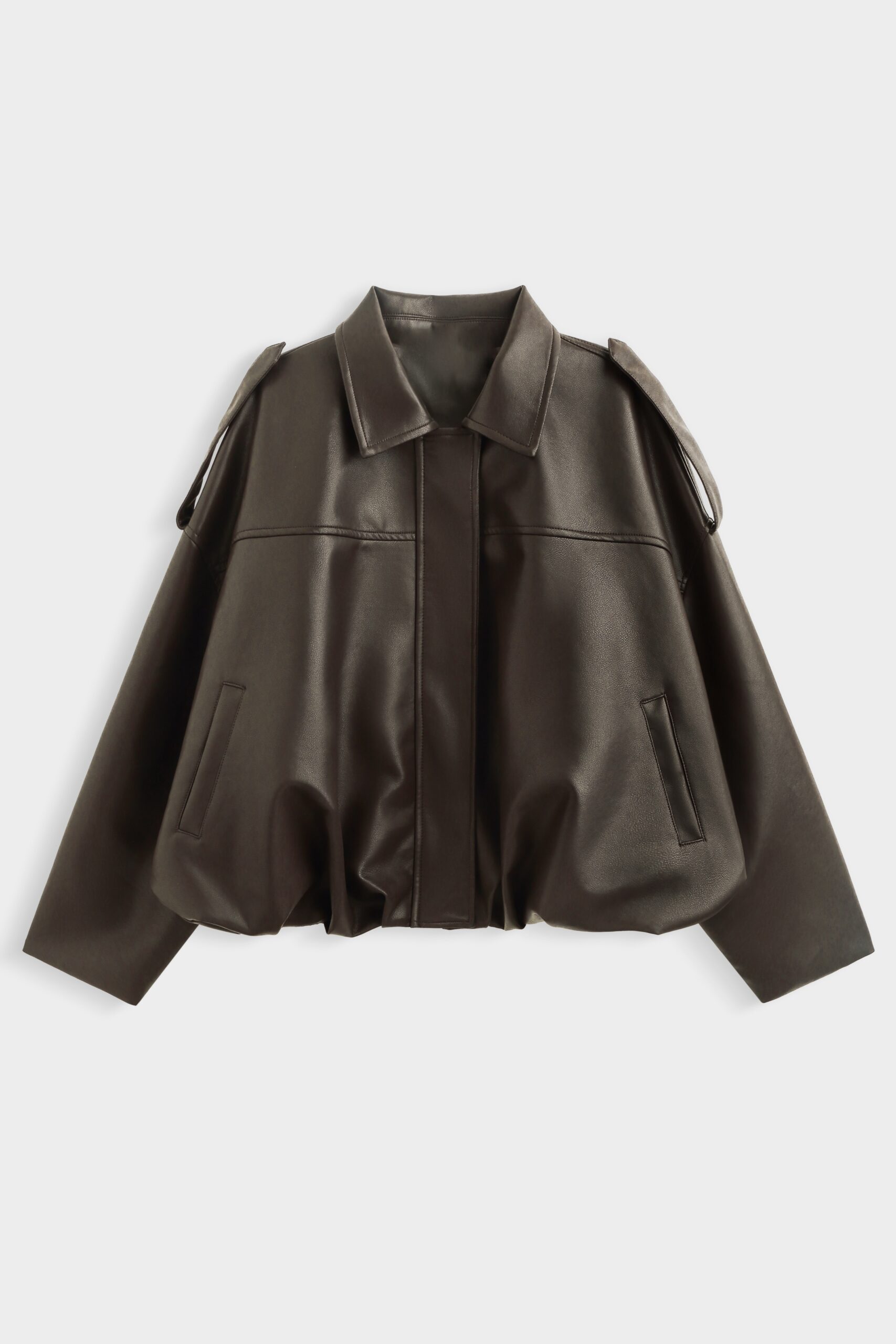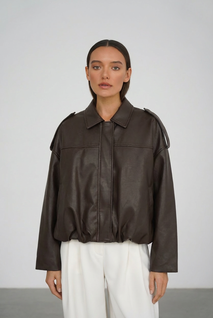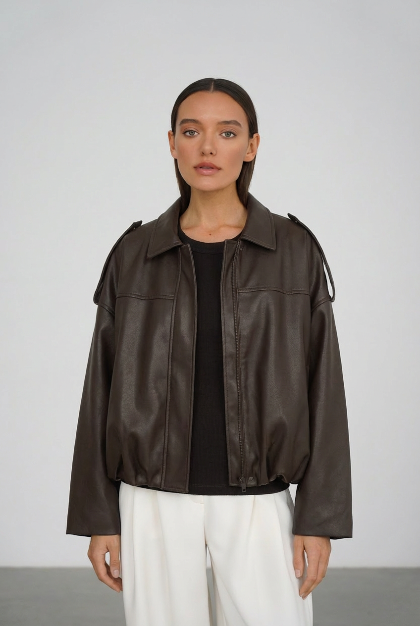 Dirbtinės odos bomber stiliaus ruda striukė