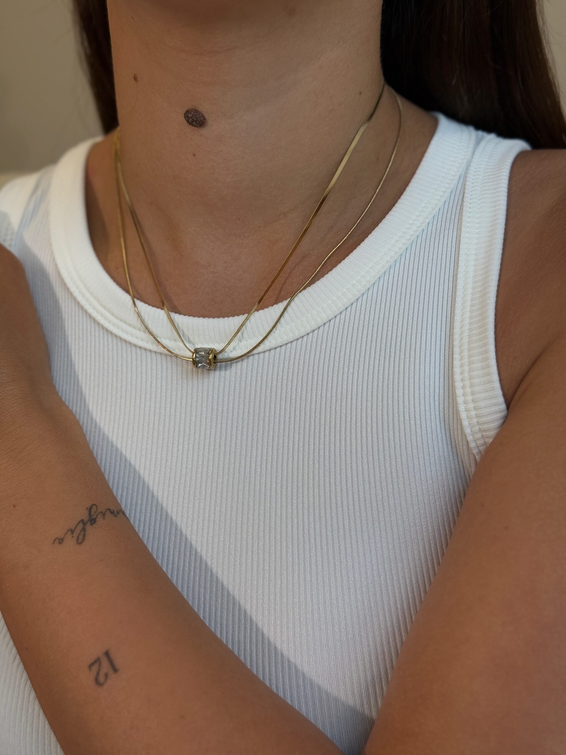 Dviguba grandinėlė su skaidriu pakabuku “Gold”