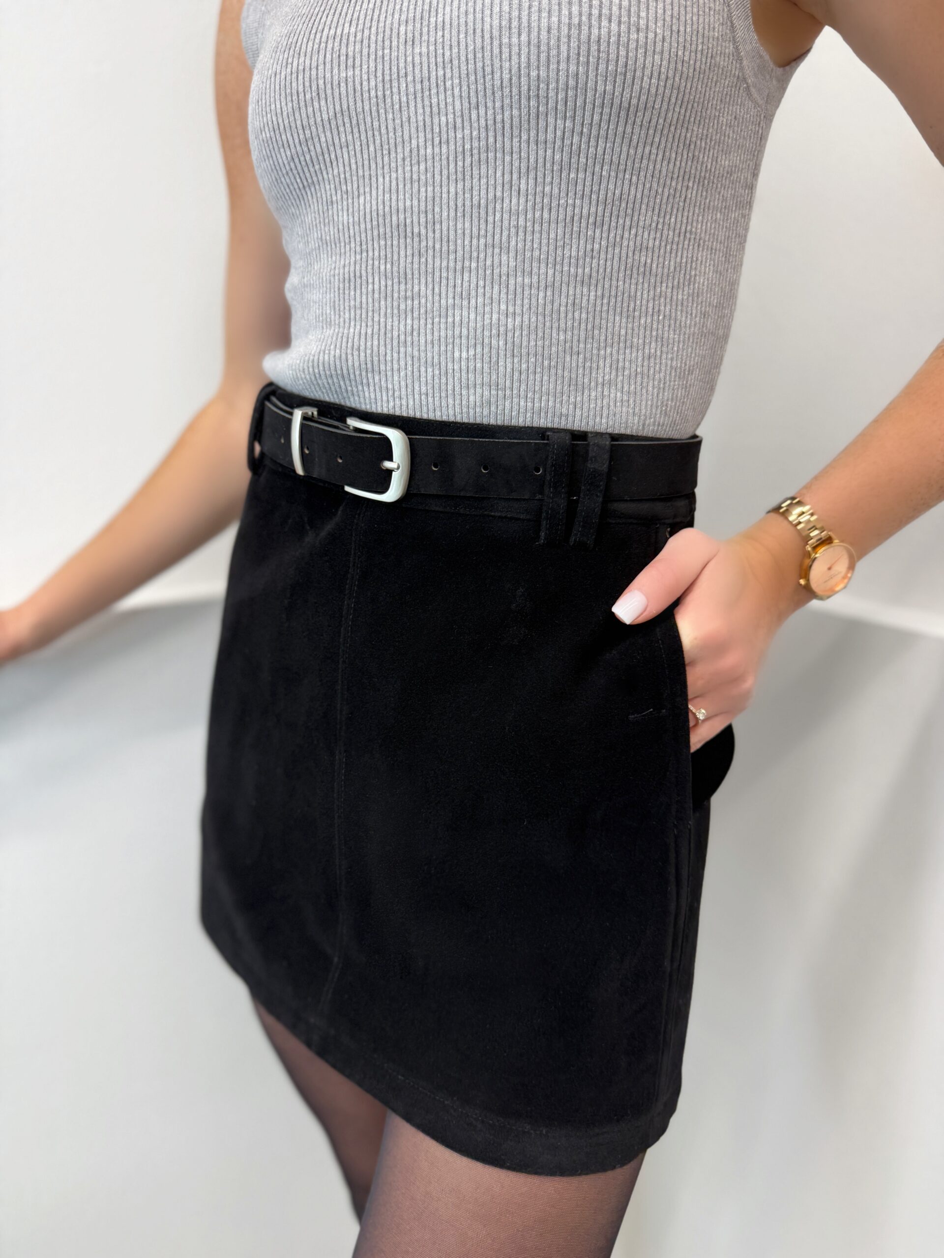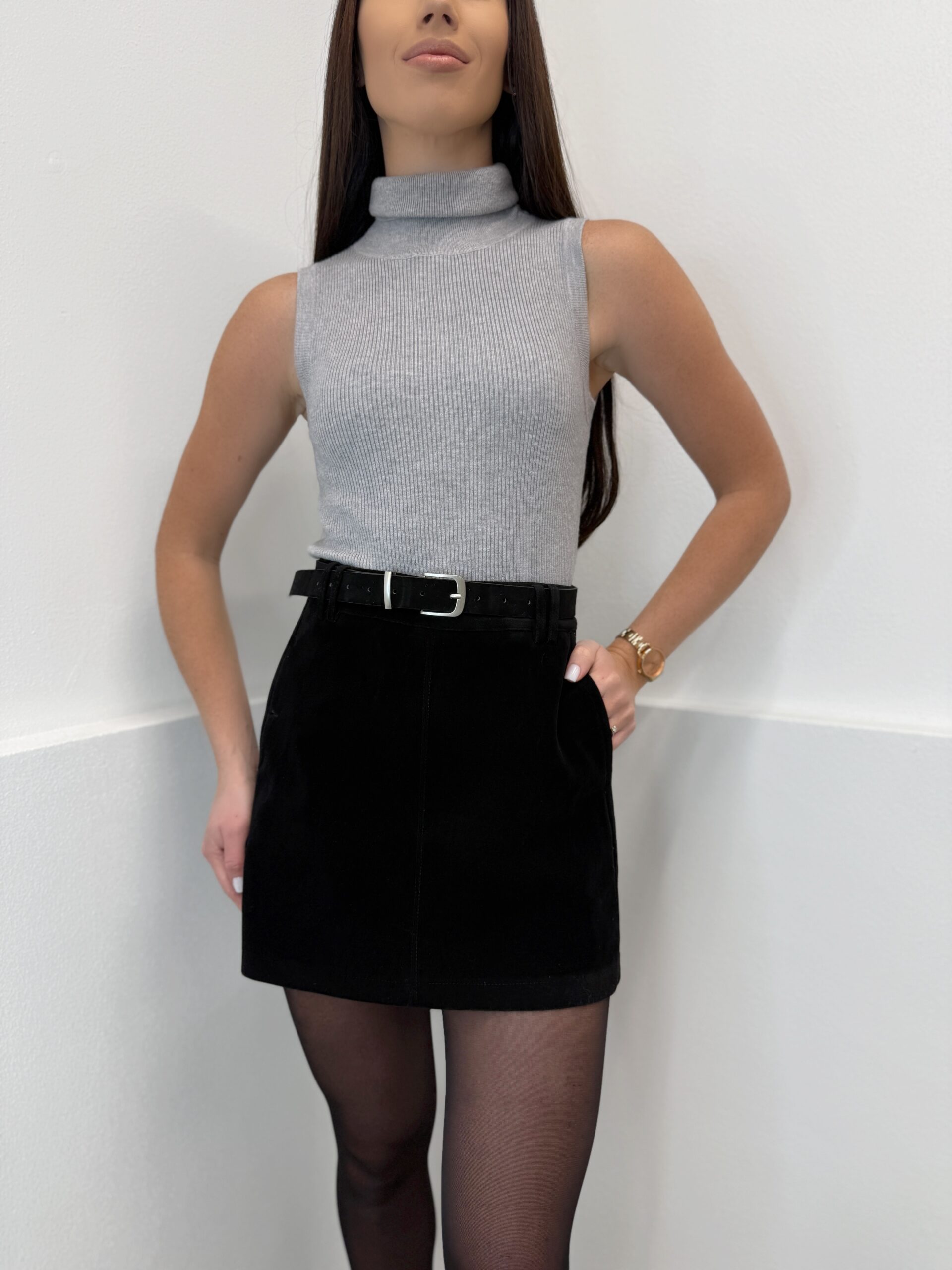 produkto kiekis: Juodas verstos eko odos sijonas su šortais
