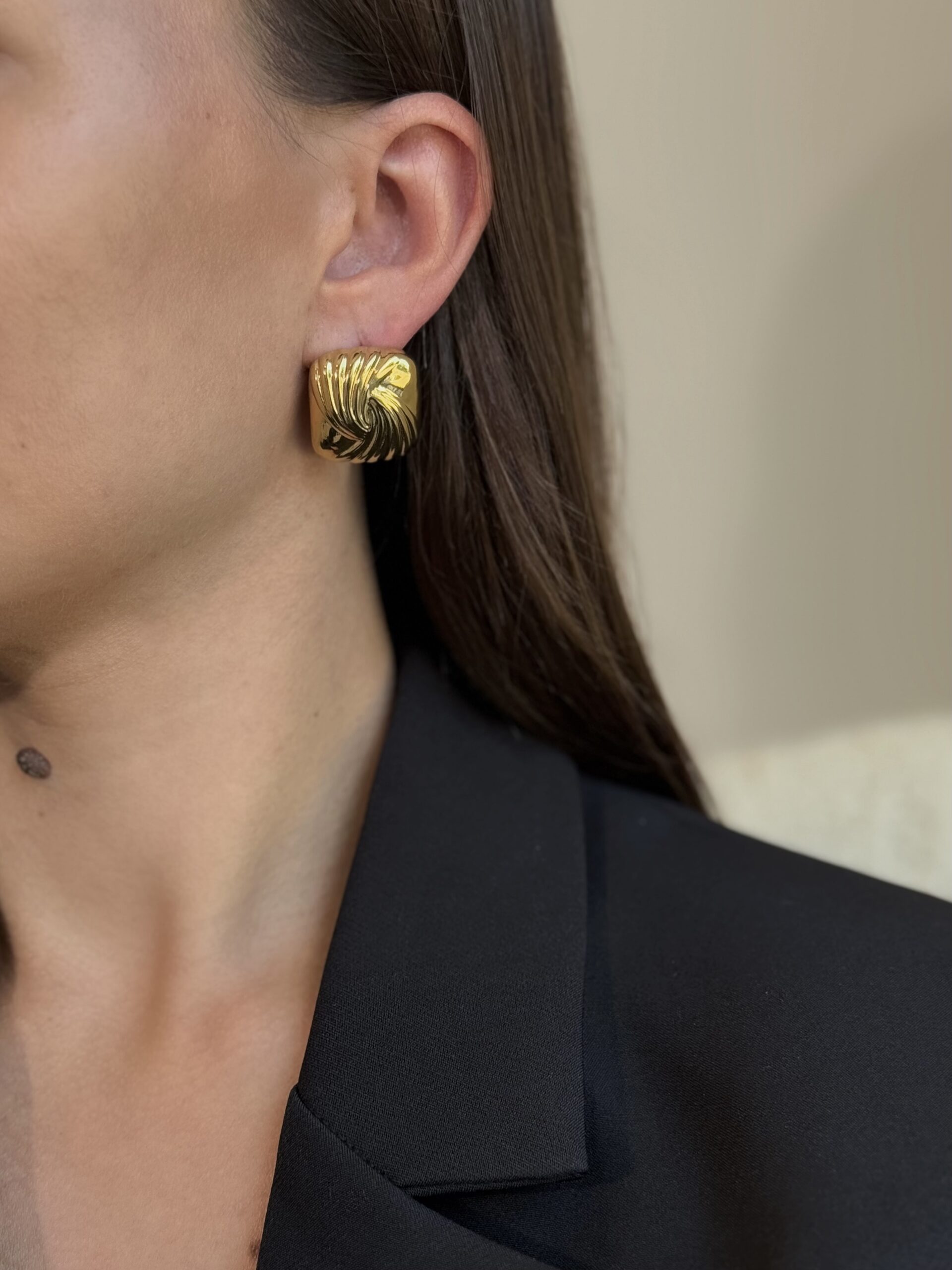 Kvadrato formos masyvūs auskarai “Gold”