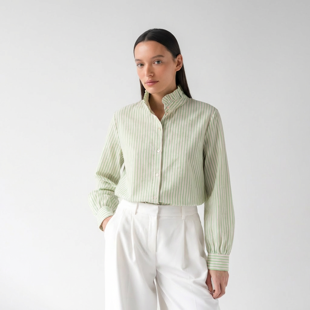 Marškiniai dryžuoti aukšta apykakle