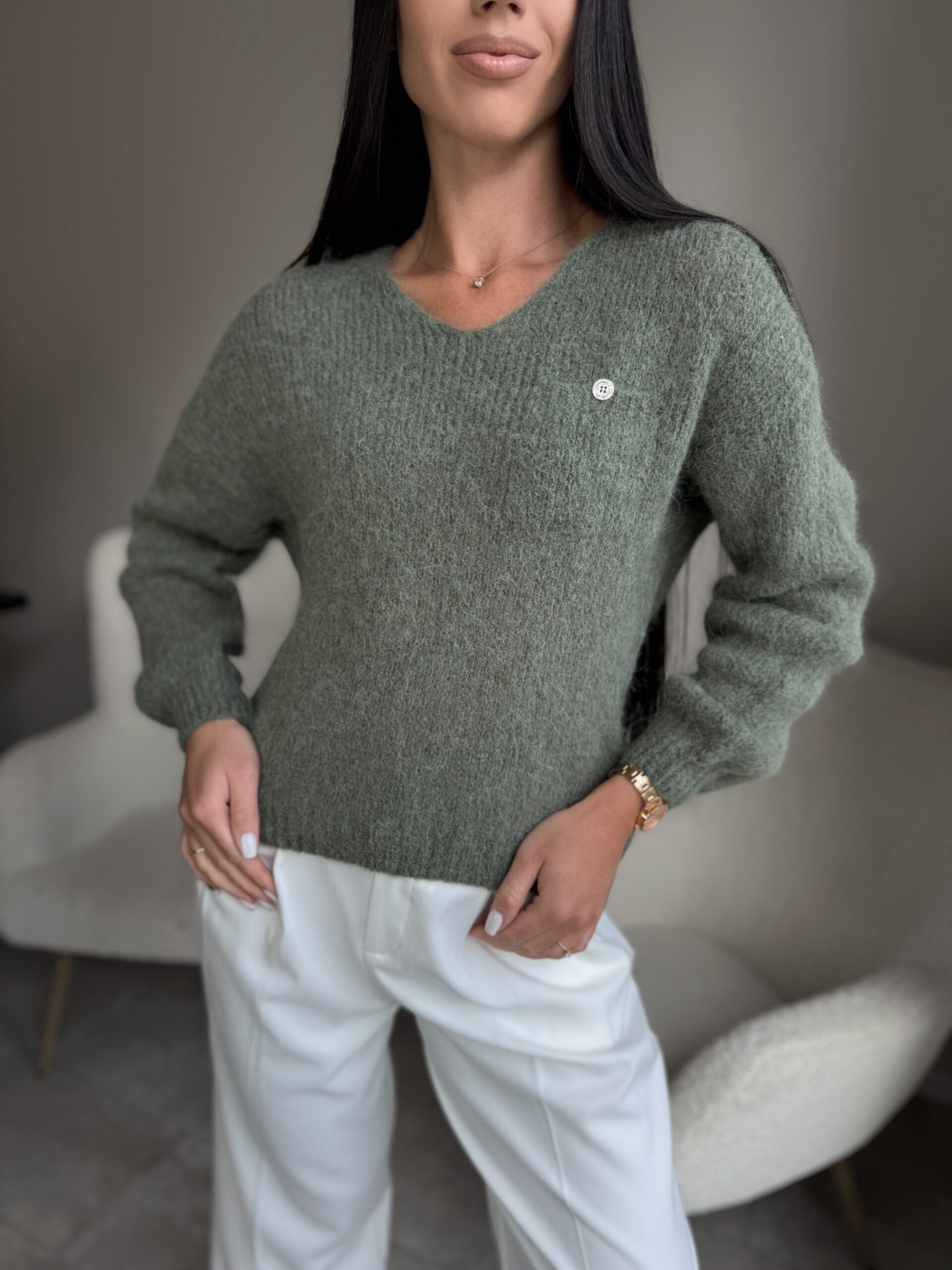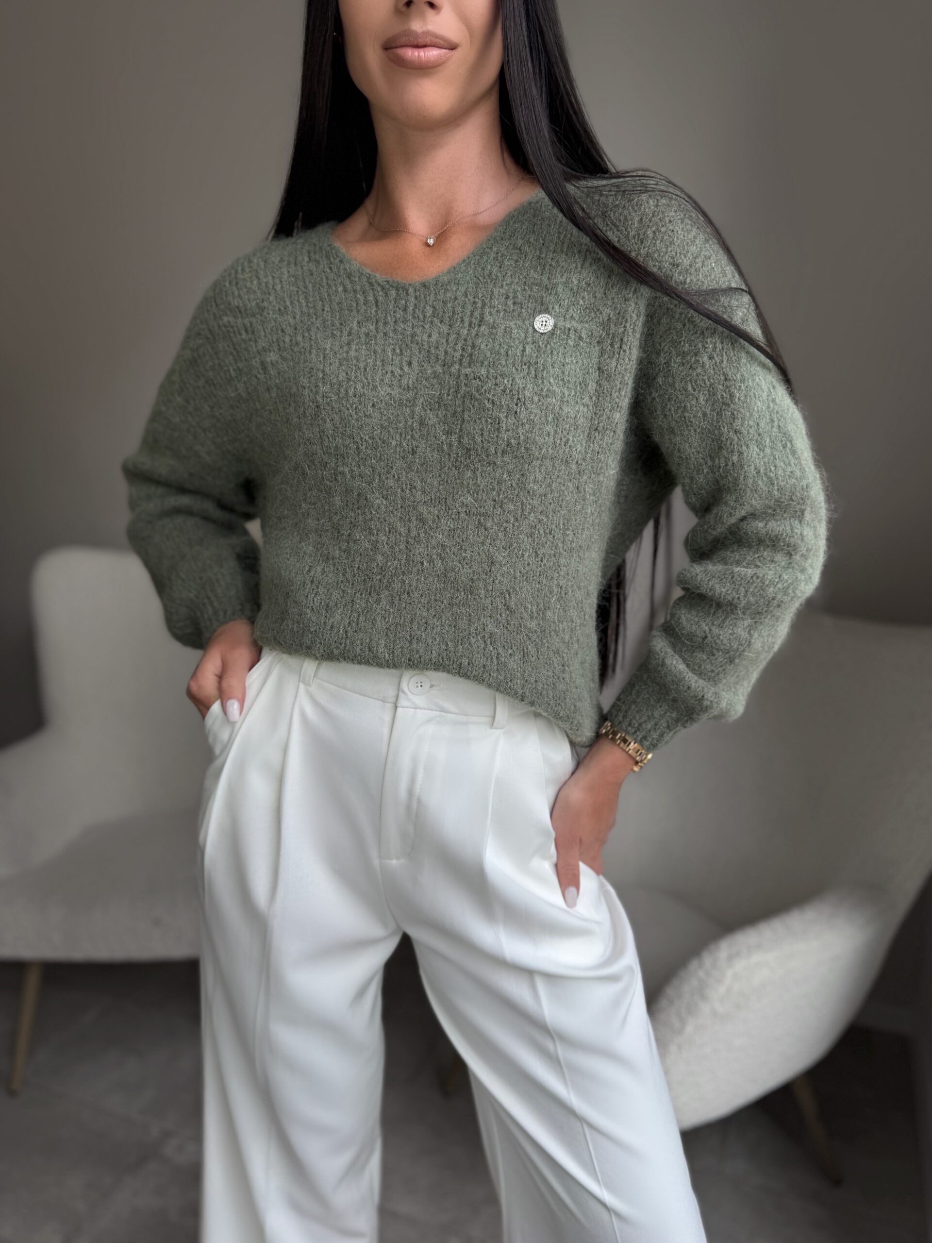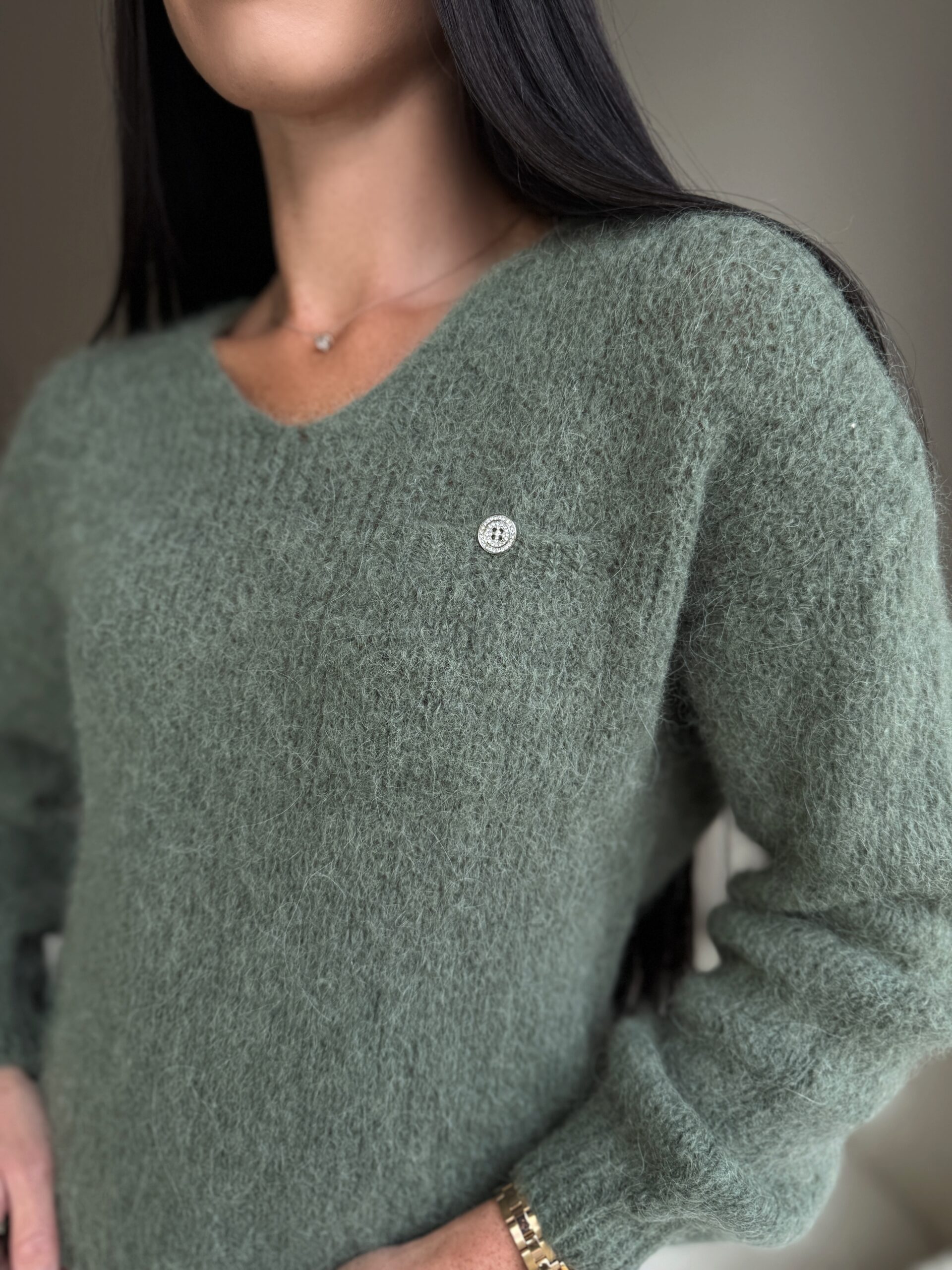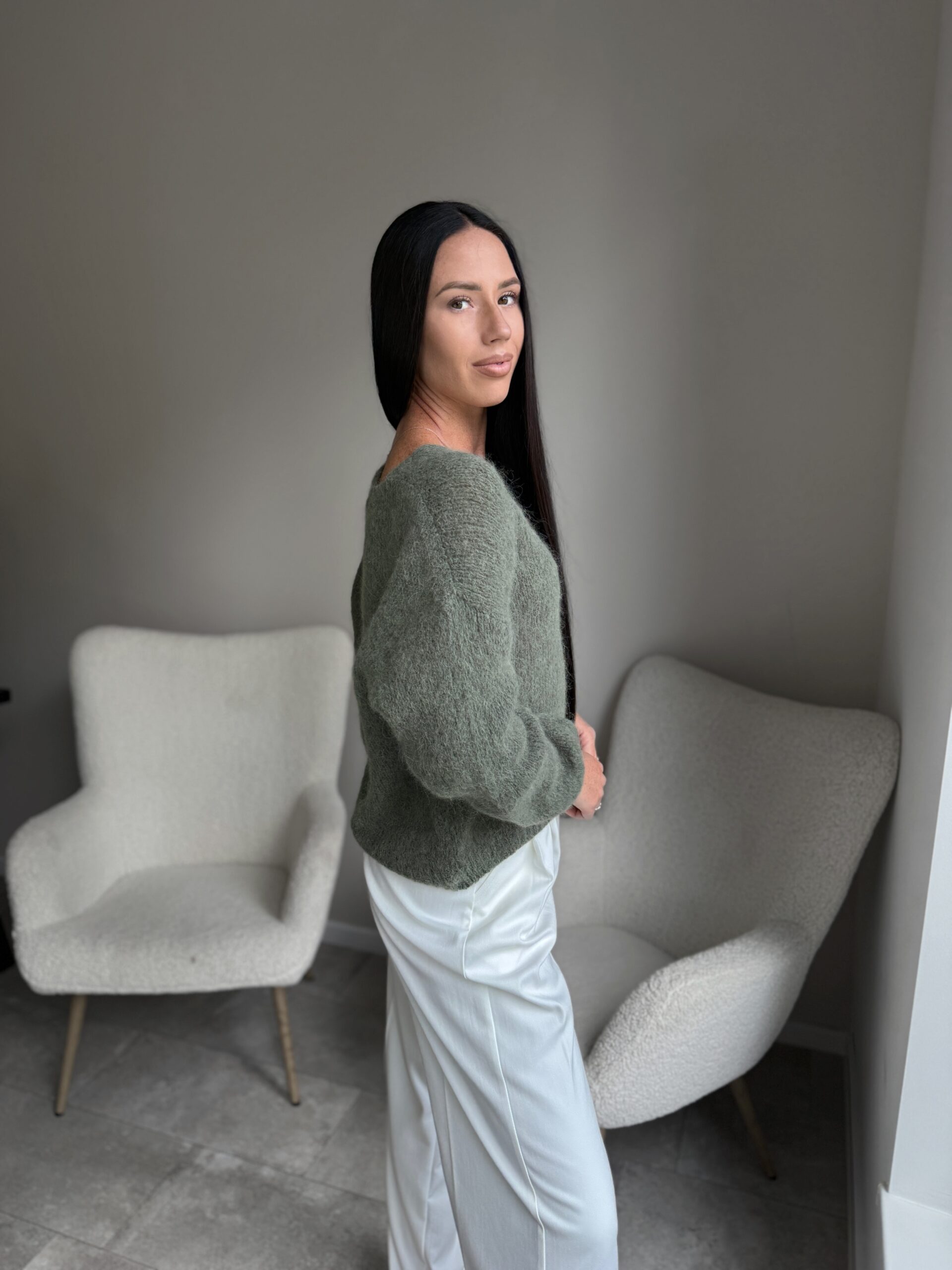 Megztinis ilgomis rankovėmis Chaki su alpaka ir vilna