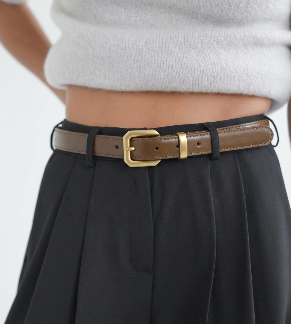 produkto kiekis: Odinis rudas universalus diržas 2,5cm