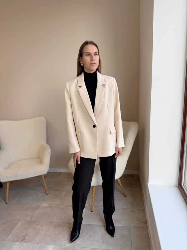 S dydis: ilgis nuo peties 70 cm., rankovės 42 cm., krūtinė 116 cm.