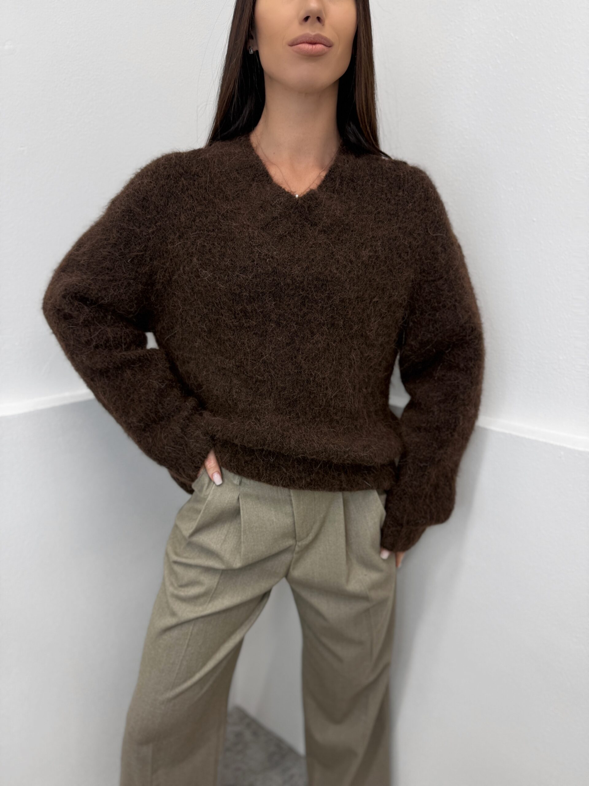 Oversize stiliaus rudas megztinis su alpaka ir vilna