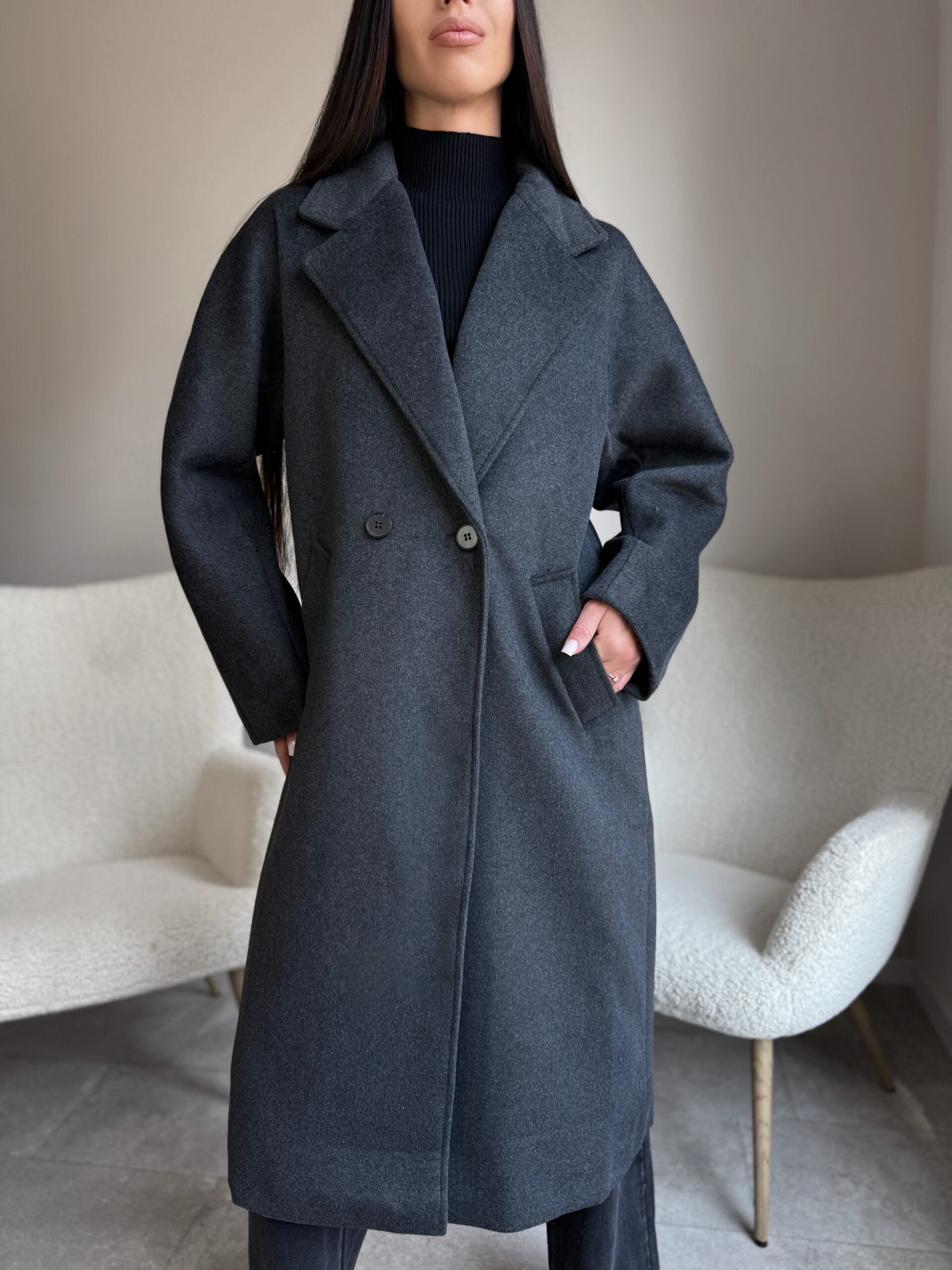 Pilkas paltas su vilna