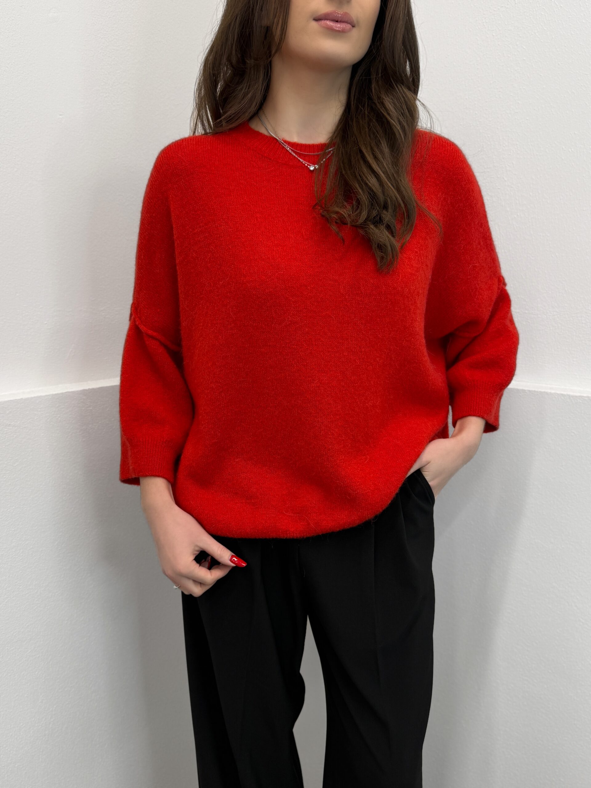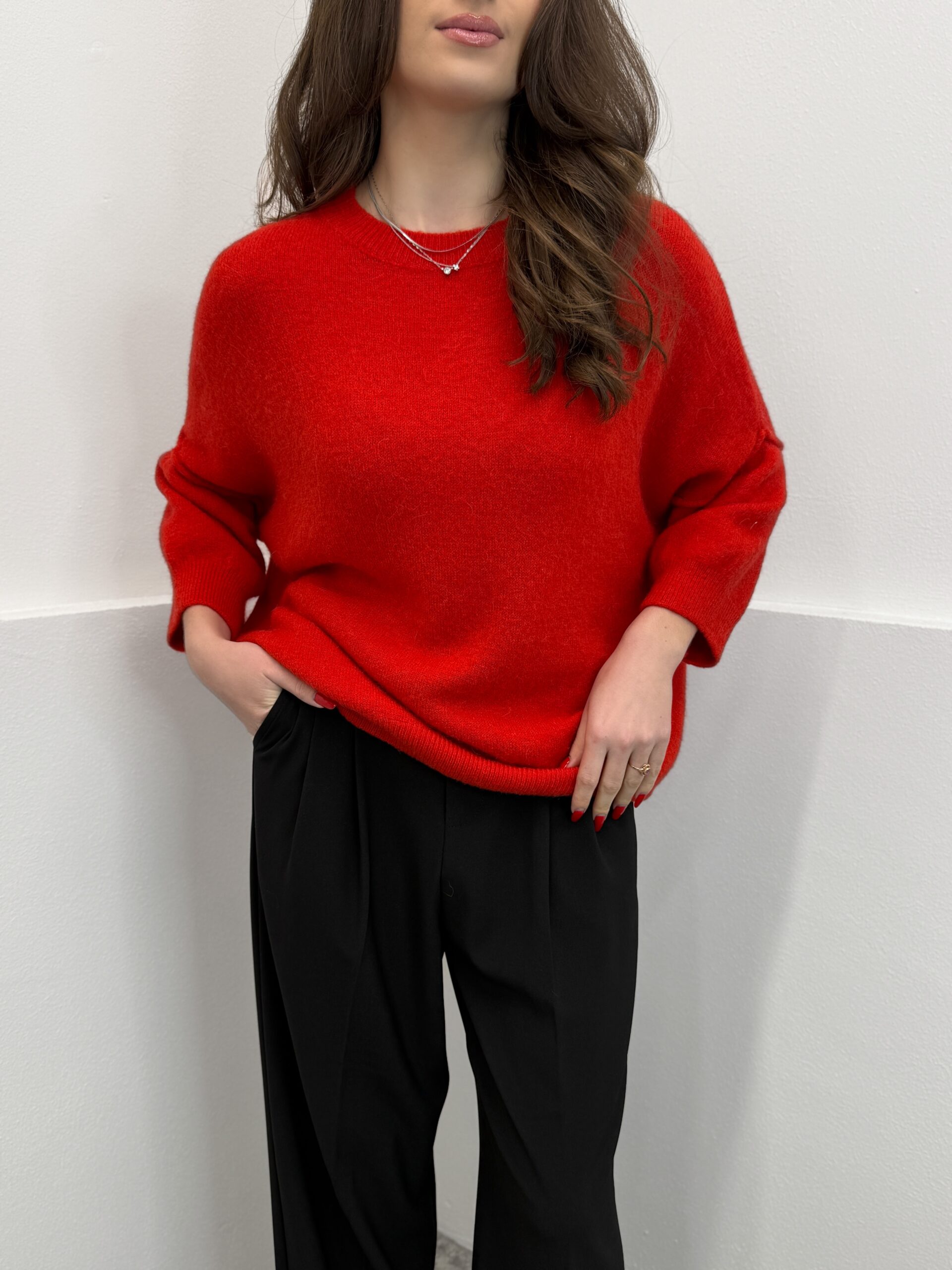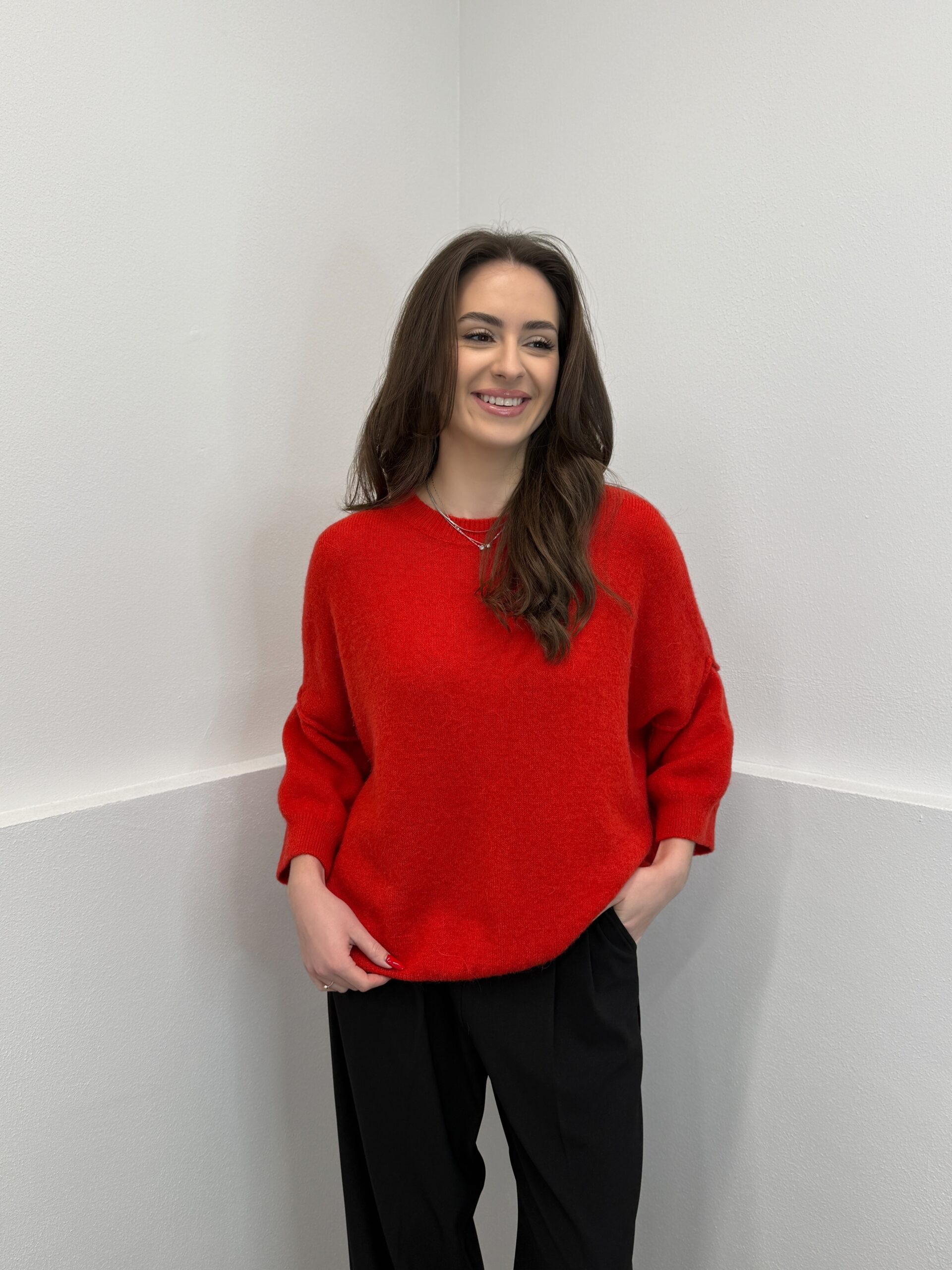Raudonas megztinis su alpaka ir vilna Sofia