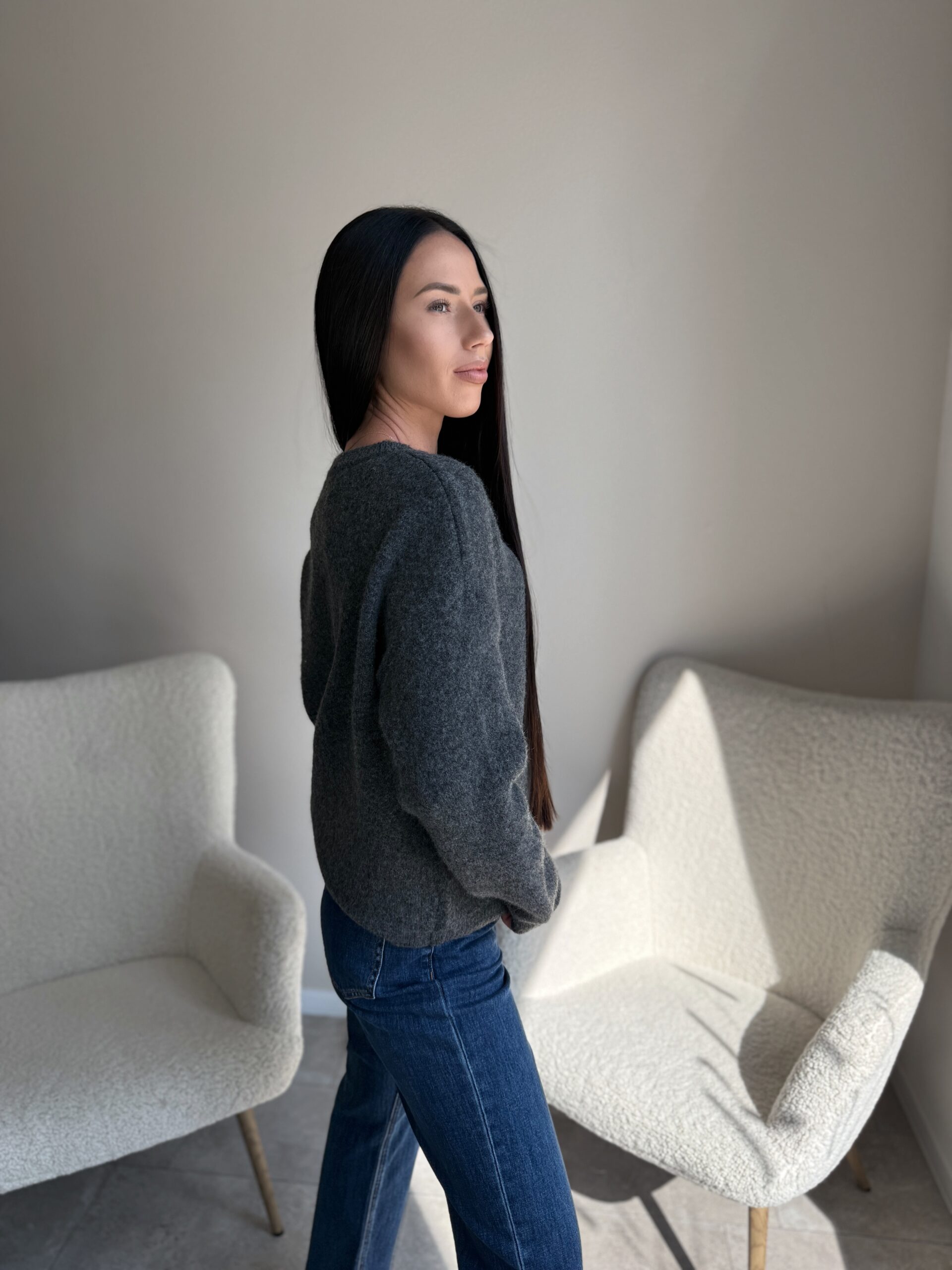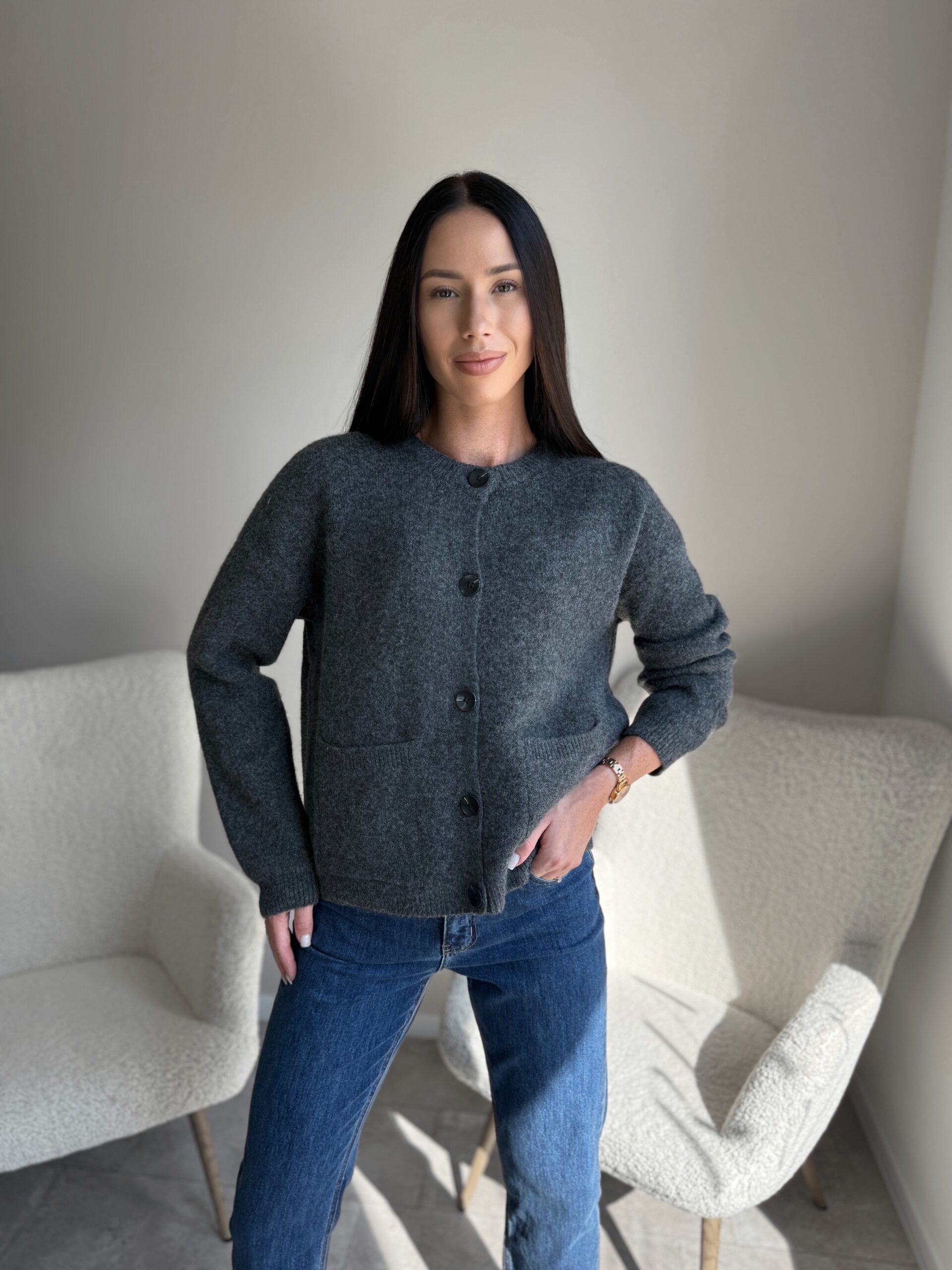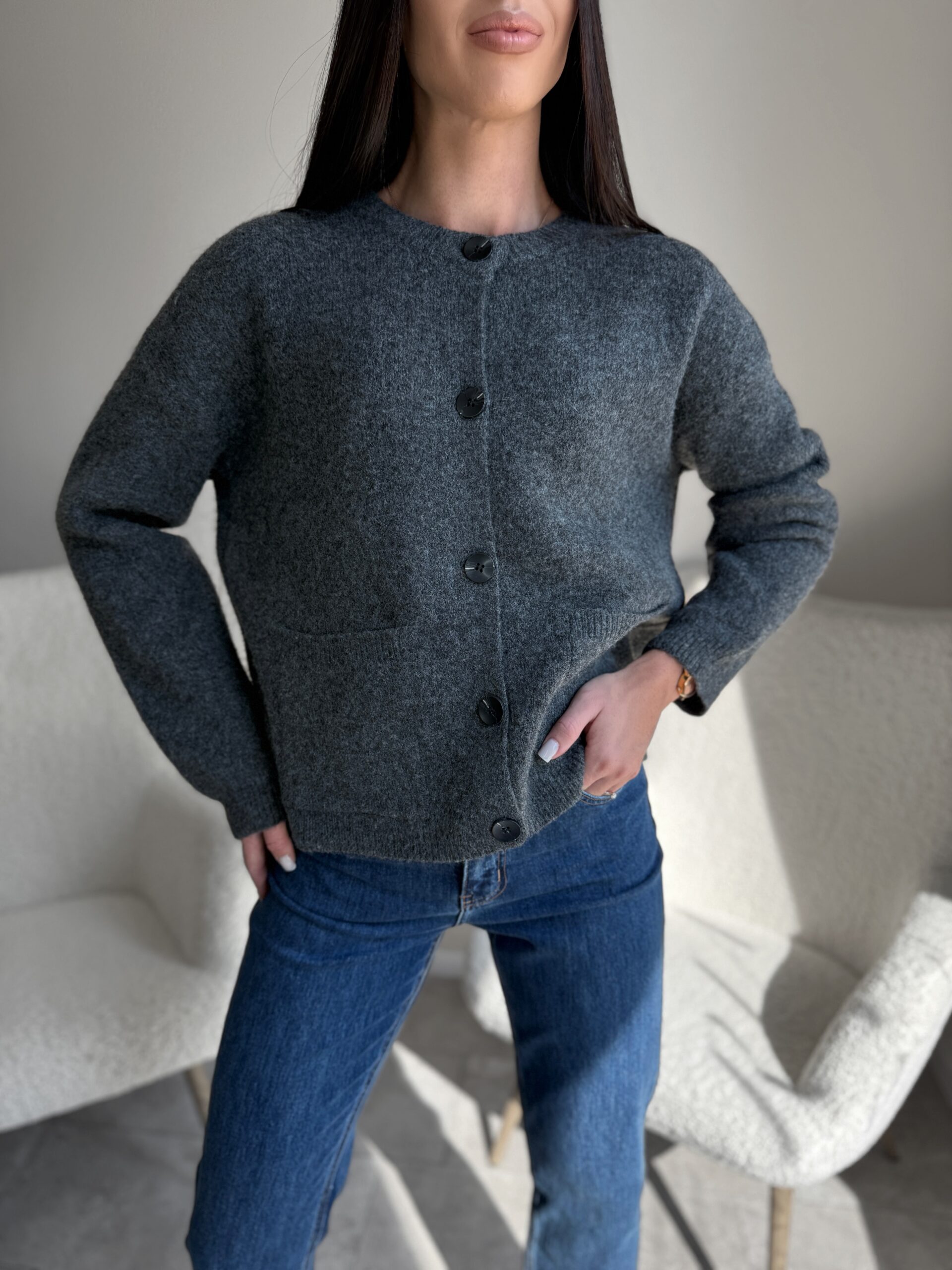 Šiltas kardiganas juodomis sagomis Grey
