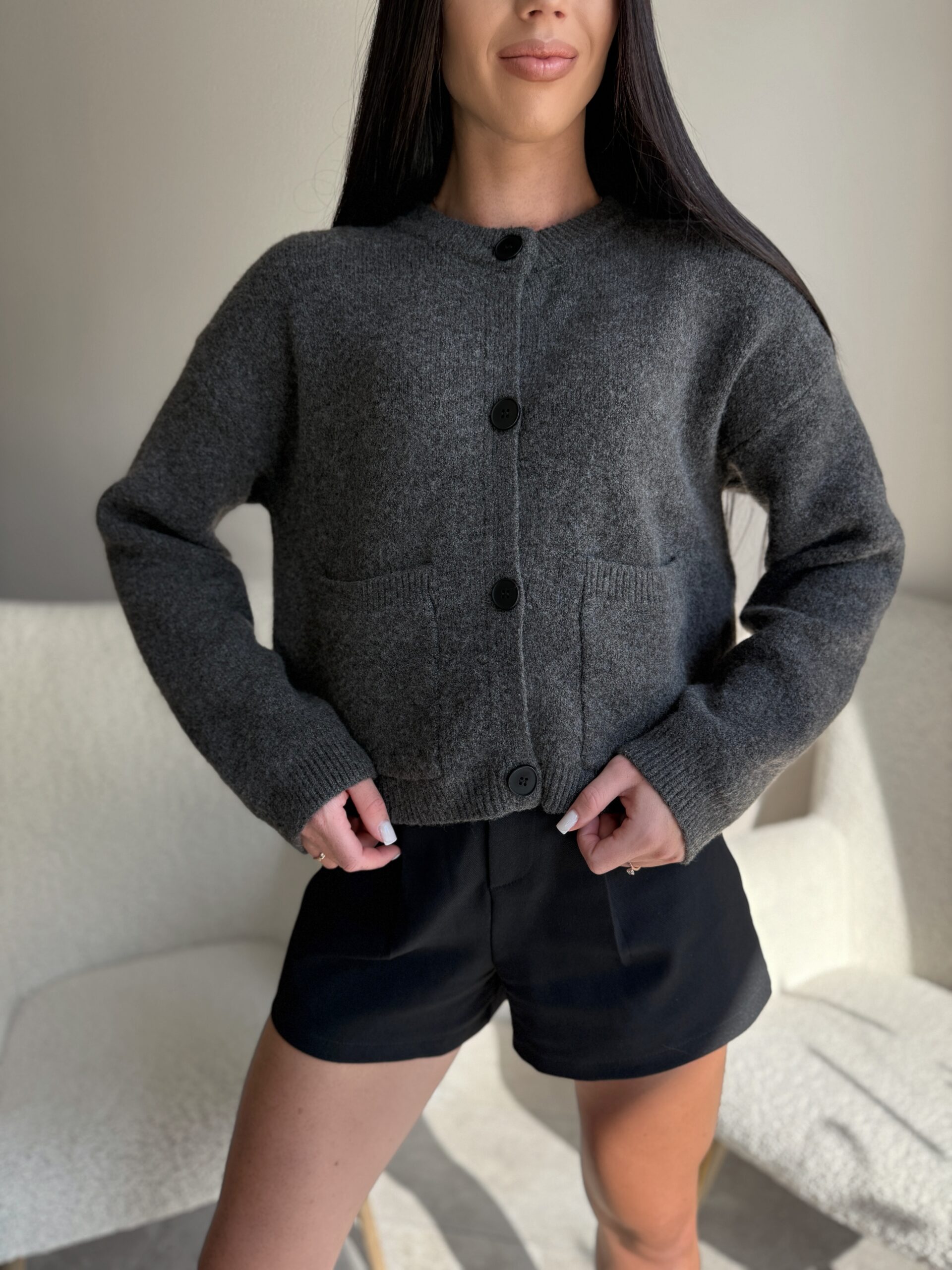 Šiltas kardiganas juodomis sagomis Tamsiai pilkas