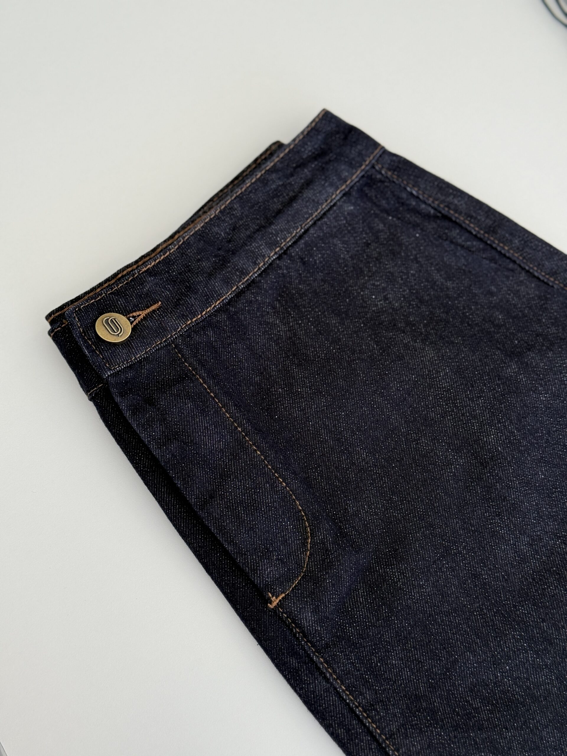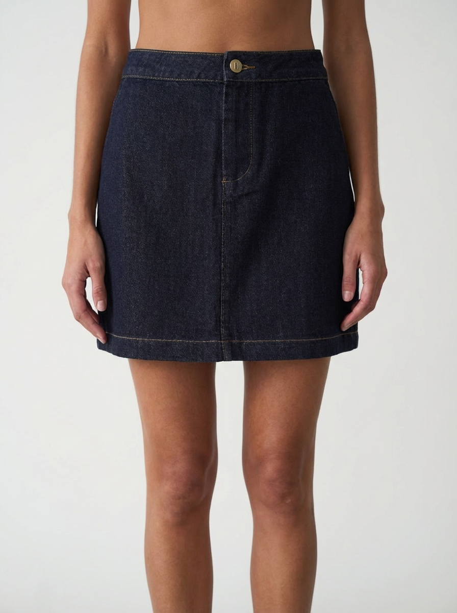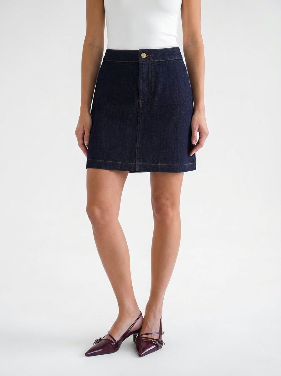 Tamprus tamsiai mėlynas trumpas džinsinis sijonas