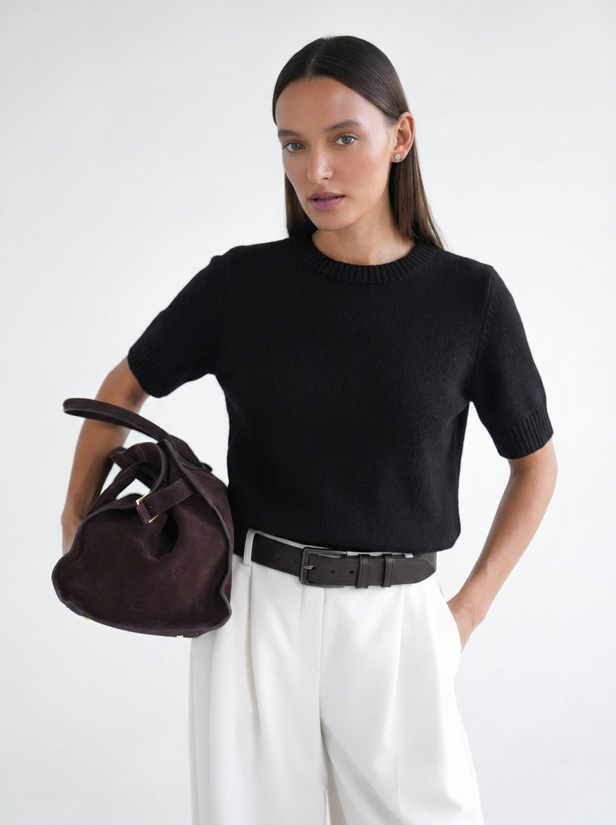 Trumpomis rankovėmis bazinis megztinis Juodas
