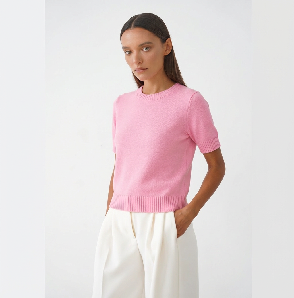 Trumpomis rankovėmis bazinis megztinis Rožinis